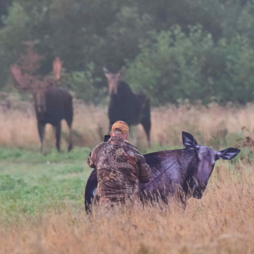 The updated Cow Moose weighs a mere 48 oz with leg poles and stands 66-inches tall. Folding to a 25-inch circle means you can easily have the Moose II with you on any hunt. You may only have one chance to hunt moose in your life, give yourself an edge and pack the Cow Moose decoy.
