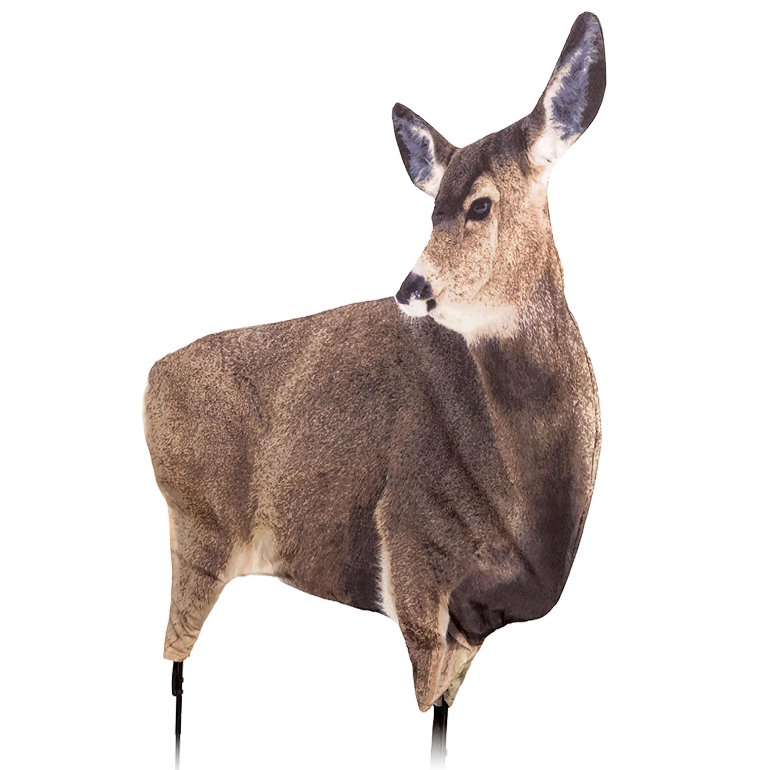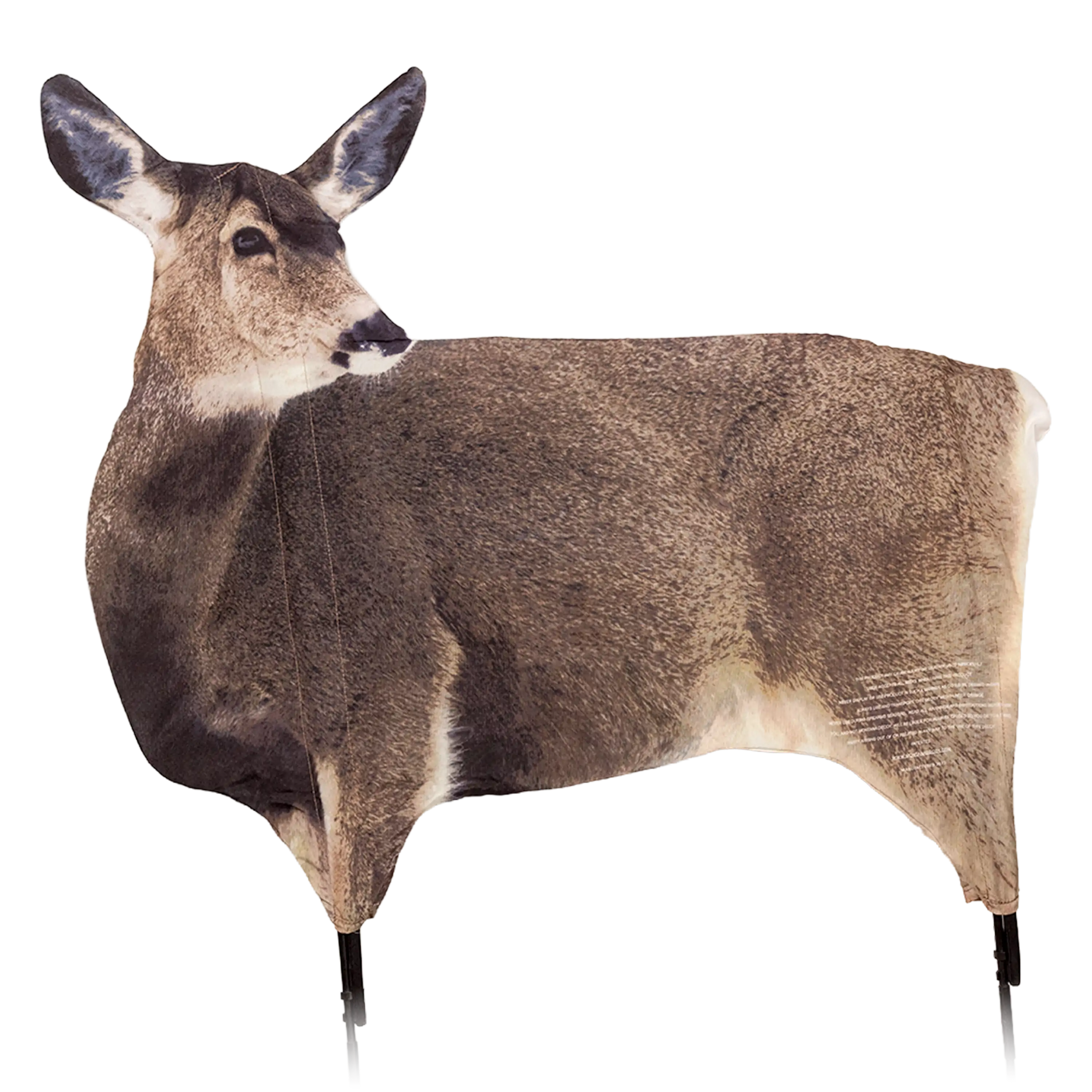 Miss Muley is a lifelike mule deer decoy designed to help hunters close the distance on wary bucks. Its life size body provides valuable cover during spot and stalk situations, while the realistic pose grabs the attention of rutting bucks and creates the perfect distraction for a shot. Built from photo realistic imagery, it pops open instantly and folds down to the size of a dinner plate for easy transport. Leg poles included and compatible with the Quickstand (sold separately).