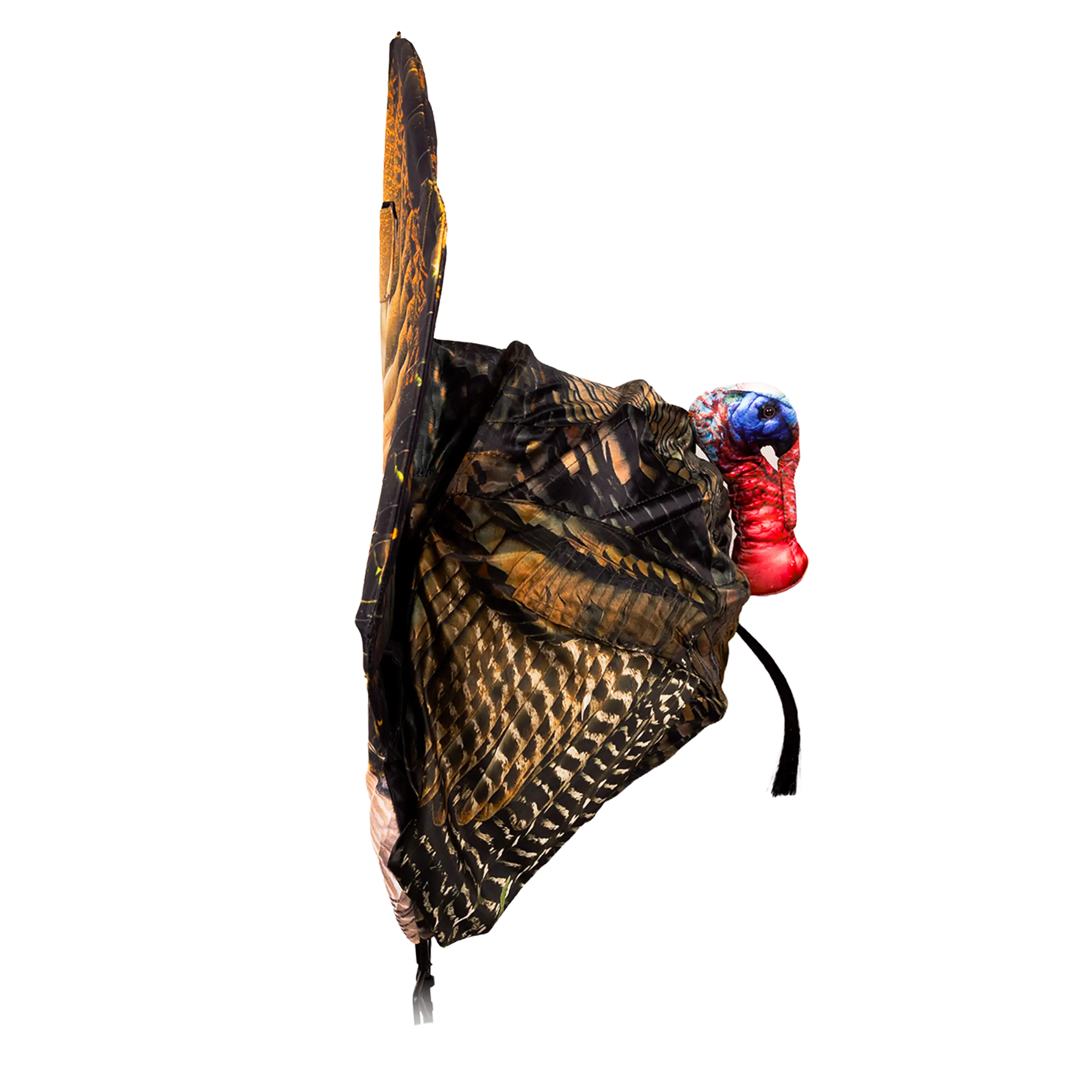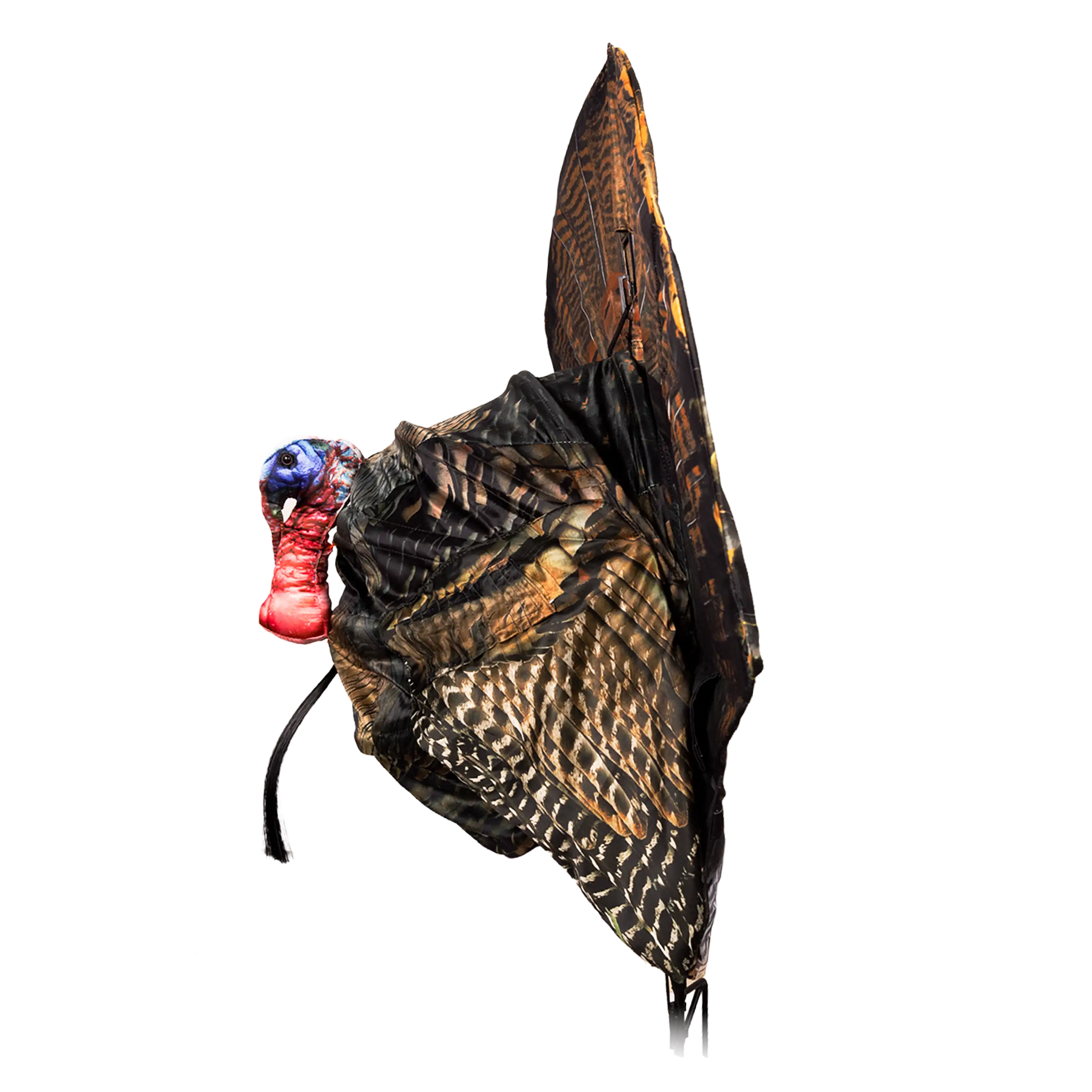 Wiley Tom 3D is a first of its kind hybrid strutter decoy and the only full strut decoy truly built for the mobile hunter. It’s two-piece design consists of an ultralight photo-realistic 2D strutting tom along with a 3D body and head that quick-attach for 3D realism. Go ultralight 2D for long hikes or reaping. Add the 3D body for more realism and it’s still lighter and more packable than other 3D strutters on the market. Wiley Tom 3D is the ultimate run and gun full strut decoy.